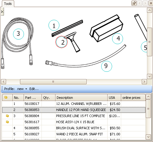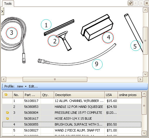 - The Schematic Parts List view can be changed according to the user needs: hide/show columns with price information.