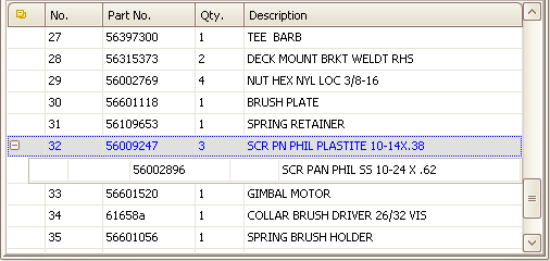 - Superseded, remanufactured, related and discontinued parts can be identified in the Schematic Parts List. You can see the number of the supersession by clicking on the plus sign near the superseded part.